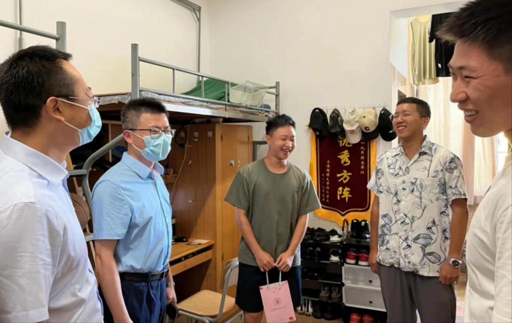 在学生宿舍,孔德民对同学们表示慰问,并送出了寓意相思和温暖的中秋礼物,亲切地与同学们聊起家常,详细询问了同学们的学习、生活情况,认真聆听学生的心声,并叮嘱同学们离开父母的陪伴也要好好照顾自己。寝室内欢声笑语,洋溢着师生间的浓厚情谊。