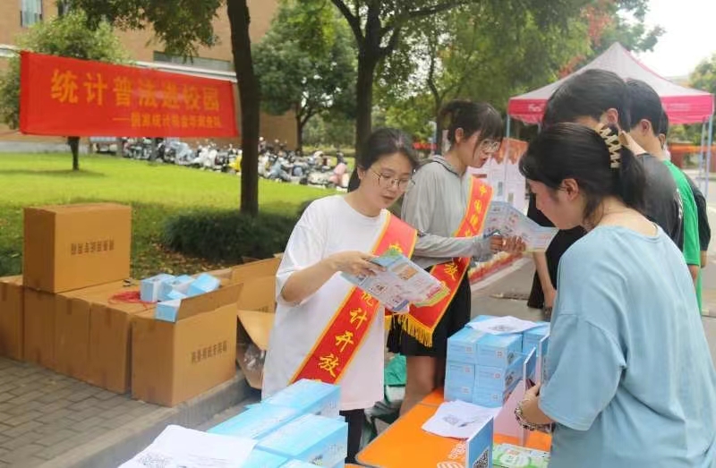 活动现场气氛热烈,主办方精心布置了主题横幅和宣传展板,通过播放统计调查宣传片、发放宣传资料、开展现场咨询等多种形式,对社会各界普遍关注的居民收支调查、物价房价涨跌、调查失业率等统计话题做了专业解答,让师生更好地了解统计、走近统计、感受统计。