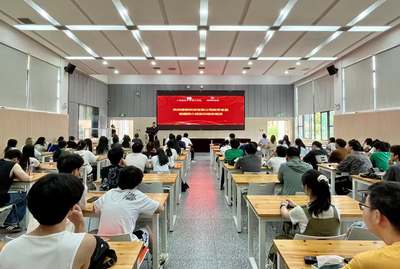 统计系副主任武斌现场致辞,他介绍了统计系一贯坚持开展学生实习实训的具体做法及取得的成绩,对合作方和学院的支持表示衷心感谢,并寄语参训学员珍惜此次实训机会,为未来的职业生涯奠定坚实基础。杭州睿数科技有限公司教学总监梁国际介绍了此次暑期实训的目标、涵盖的主要内容、班级管理制度及结业标准。学生代表胡楚做了表态发言。