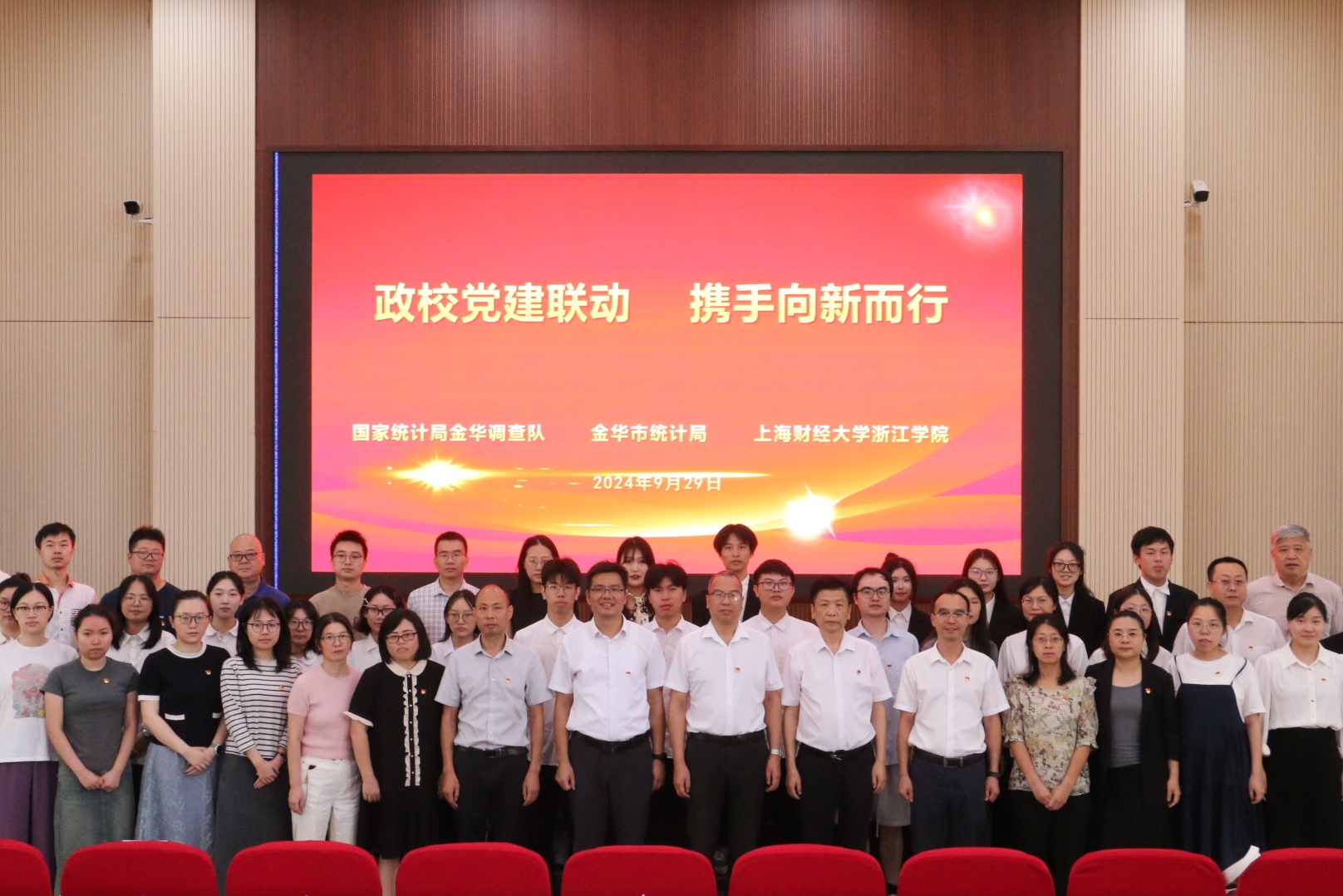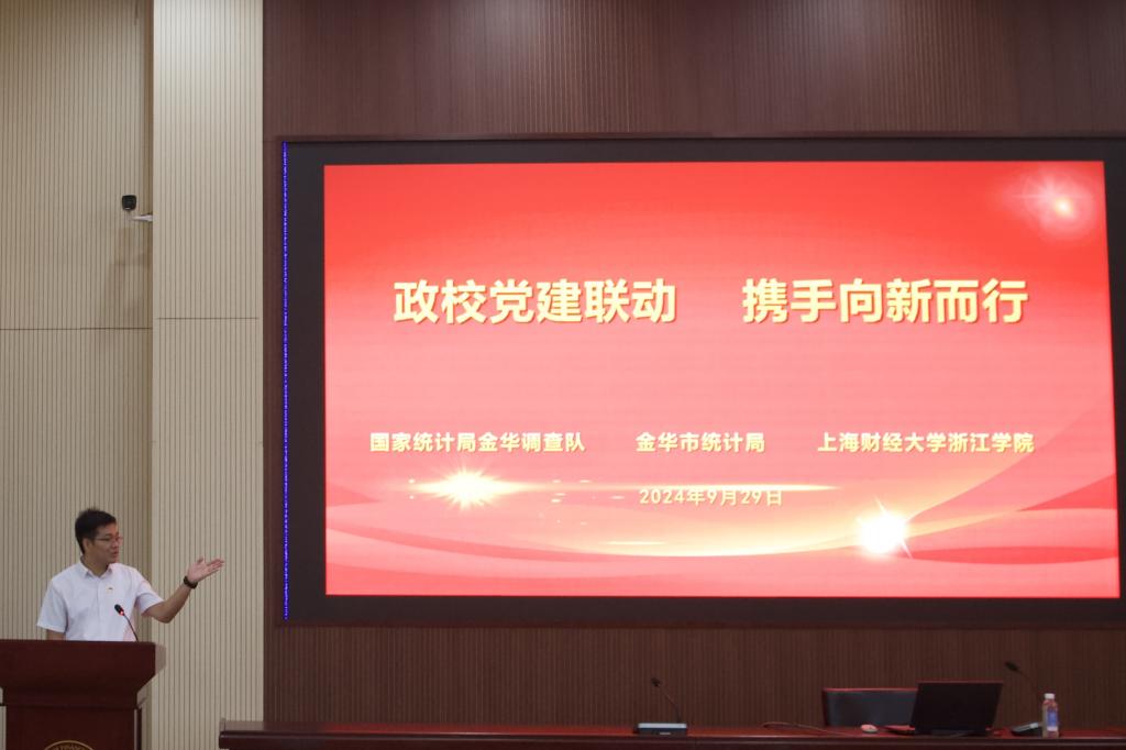 9月29日,学院统计系联合国家统计局金华调查队、金华市统计局,在学院120报告厅开展了“政校党建联动 携手向新而行”主题党日活动。此次活动不仅是一次党建联建的重要实践,也是对前期政校党建联建成果的精彩展示和深化拓展,更是学院积极推进“一融双高”建设与统计系践行“双学双融”发展理念的生动实践。活动中,还举行了新生“开学第一课”系列活动启动仪式。市调查队党组成员、副队长张国民、楼涛及纪检组长徐玉飞,市统计局党组成员、社会经济调查队队长赵奇峰,上海财经大学教务处副处长吴纯杰,以及学院党委副书记何志强、学院党委委员、组织部部长张正亮等出席活动。此外,来自市调查队和市统计局的党员、干部代表,以及爱游戏 (aiyouxi)官方网站全体新生和师生党员等共计200余人也参与了此次主题党日活动。