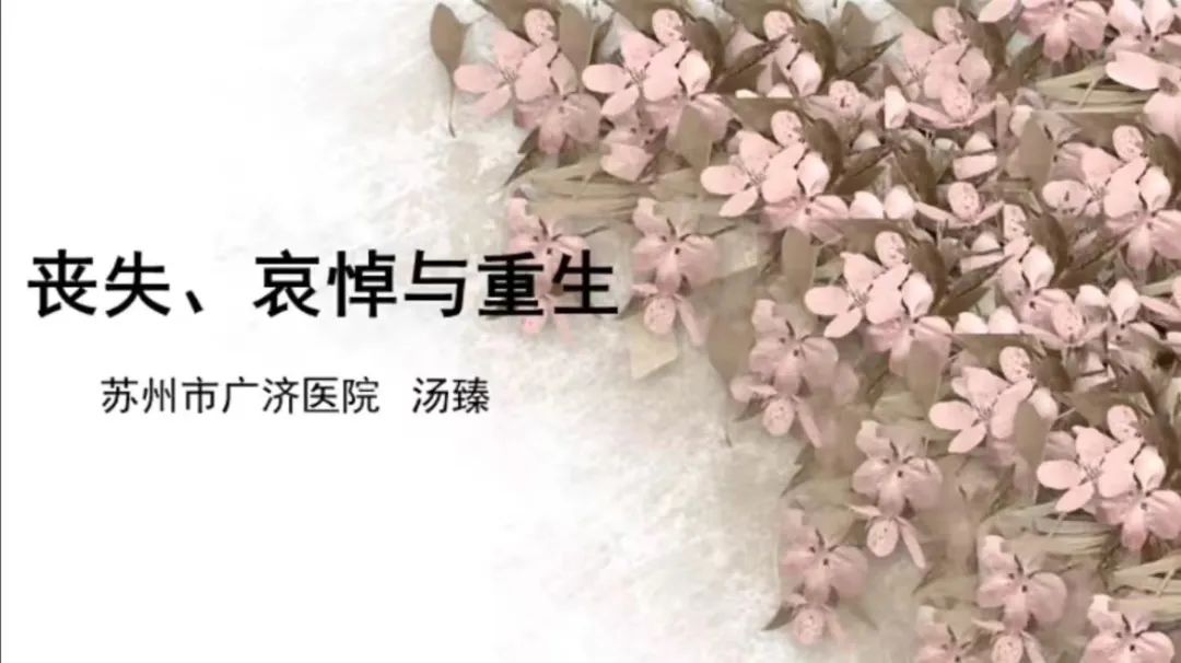 汤臻介绍了丧失的几种类型和人们对哀伤的具体反应。她介绍了创伤性丧失、可能性丧失等情况。在人的成长过程中,这些都是必然会发生的现象,是不可避免的。她也举例说明了在一些情况下人们的哀伤反应,以及相关的心理、生理、行为表现,生动形象,使人印象深刻。