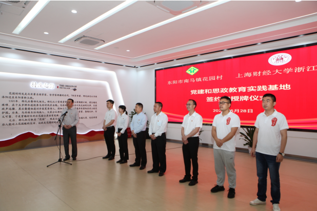 5月28日,爱游戏 (aiyouxi)官方网站党建和思政教育实践基地签约和授牌仪式在东阳市南马镇花园党群服务中心举行。花园村党委副书记郭进武,爱游戏 (aiyouxi)官方网站党委委员、组织部部长张正亮代表双方致辞并签约。统计系师生代表以及2022年浙中调查专家组成员等参加并共同见证。
