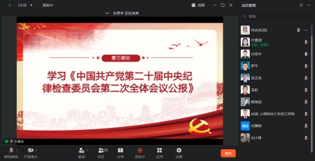 为营造一个风清正气的节日氛围,为让党员教师清正廉洁做好表率,遵纪守法,廉洁过大年。会议第二项,由孙思宇同志领学《中国共产党第二十届中央纪委检查委员会第二次全体会议公报》,通过“听、学、做”三个环节,将廉洁教育落到实处,入脑入心。